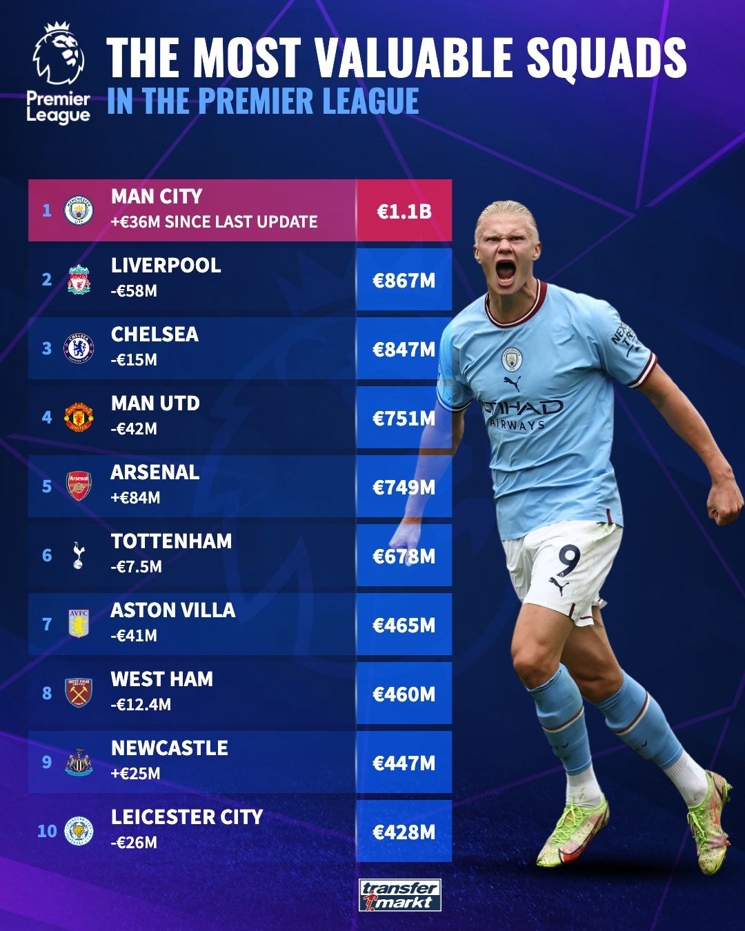 曼城独占鳌头,领跑英超积分榜
